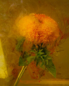 Wat op het eerste gezicht een schilderachtige foto lijkt, is een opname die onder water is gemaakt. Enkel op te merken door hier en daar een luchtbelletje en sierlijk zwevende swirls van verf en inkt.