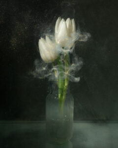Enkel op te merken door hier en daar een luchtbelletje en sierlijk zwevende swirls van verf en inkt.